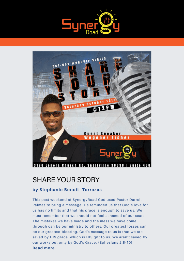 Summary: Every two weeks I would send out an email to church members and visitors with updates. The email would always include flyers, a recap of recent sermons, links to the Youtube channel and the spiritual gifts survey. This particular week, I was featured in the email twice π.