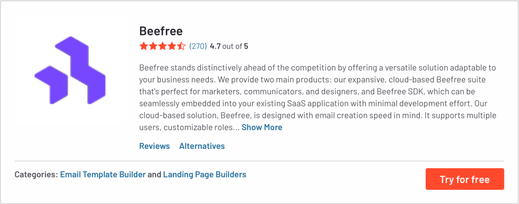 I would reply to customers who left reviews on the platforms and in doing so, I was able to address their concerns, build stronger connections, and encourage further participation. This helped us earn badges across the enterprise, midmarket, and small business grids for email template builders. Additionally, we achieved listings on the G2 landing page builder grid, expanding Beefree’s visibility.