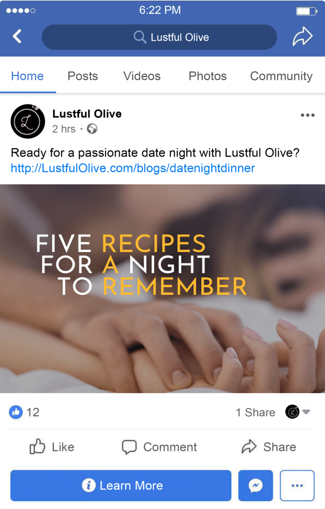 My next step was brainstorming and topic research. I needed an angle that aligned the brand’s goals with the audience’s goals. I decided that I would lean into the romance angle and create date night recipes. I thought five recipes would allow me to stay within the word count and give the audience enough value. I began reading up on flavor profiles that would work well together.